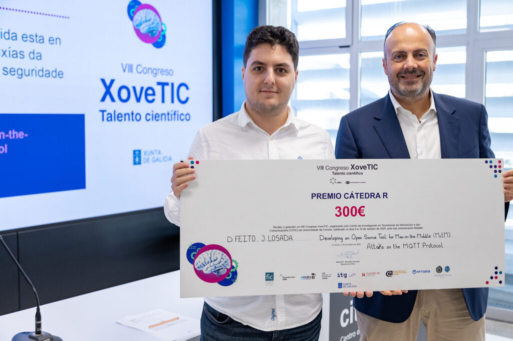 Para: Daniel Feito Pin e José Losada, polo seu traballo “Developing an Open Source Tool for Man-in-the-Middle (MitM) Attacks on the MQTT Protocol”.